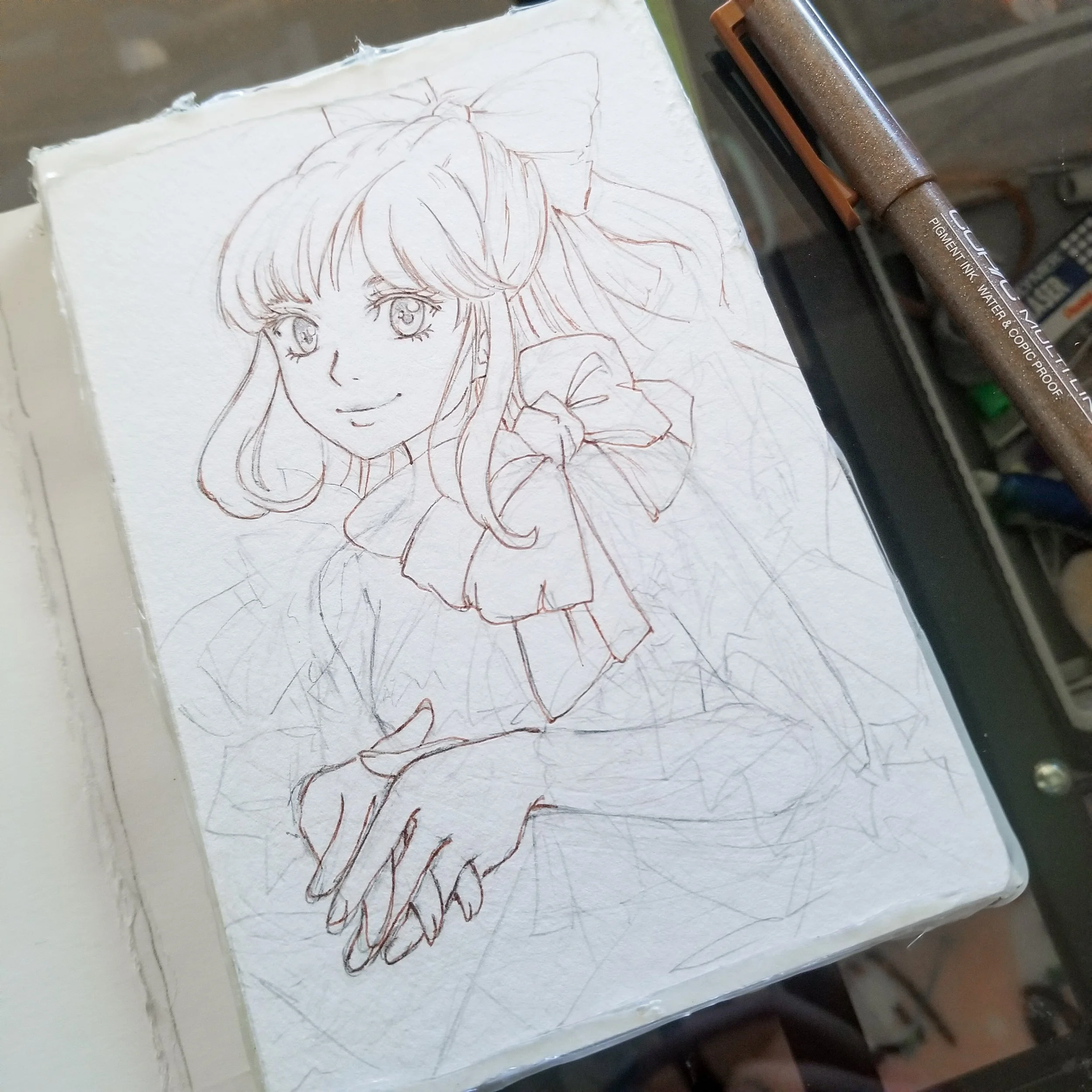 I gave the top sheet a try with a fun illustration. The block worked out perfectly - preventing the paper from buckling when wetted. Pulling the paper away from the block was simple too.